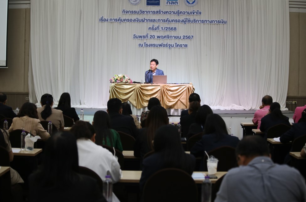 วันพุธที่ 20 พฤศจิกายน 2567 สถาบันคุ้มครองเงินฝาก (สคฝ.) โดยนายสืบสกุล กสิกรรม ผู้อำนวยการฝ่าย ฝ่ายชำระบัญชีและบริหารสินทรัพย์ ร่วมกิจกรรมสัมมนาวิชาการหัวข้อ “คุ้มครองการเงินไทยในยุคดิจิทัล” ณ ห้องประชุมแกรนด์บอลรูม โรงแรมฟอร์จูน โคราช อำเภอเมือง จังหวัดนครราชสีมา จัดโดยสำนักงานเศรษฐกิจการคลัง (สศค.) และได้ร่วมบรรยายให้ความรู้เกี่ยวกับระบบคุ้มครองเงินฝากและบทบาทหน้าที่ของสถาบันคุ้มครองเงินฝาก ให้กับผู้บริหาร เจ้าหน้าที่รัฐส่วนท้องถิ่นและสถาบันการเงินเฉพาะกิจได้รับทราบ โดยภายในงานยังมีผู้แทนจากสำนักงานคณะกรรมการกำกับหลักทรัพย์และตลาดหลักทรัพย์ (กลต.) และธนาคารแห่งประเทศไทย (ธปท.) ร่วมบรรยายให้ความรู้เกี่ยวกับการลงทุน การวางแผนทางการเงินและภัยทางการเงินในงานสัมมนาครั้งนี้ด้วย